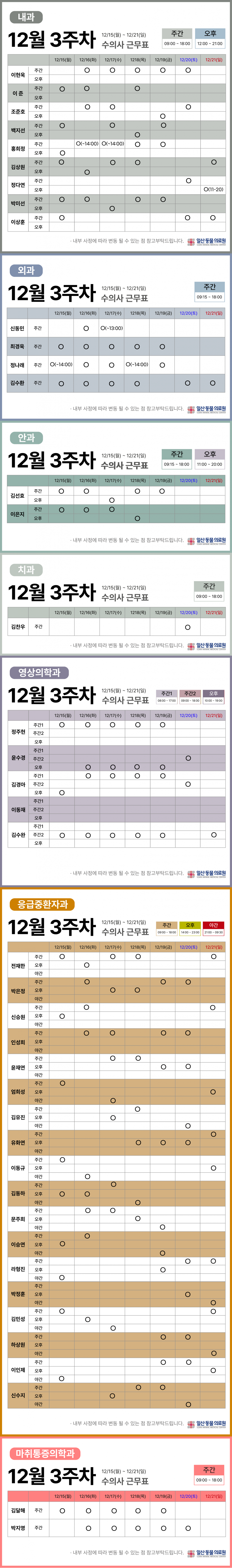 12월 3주차 근무 시간표