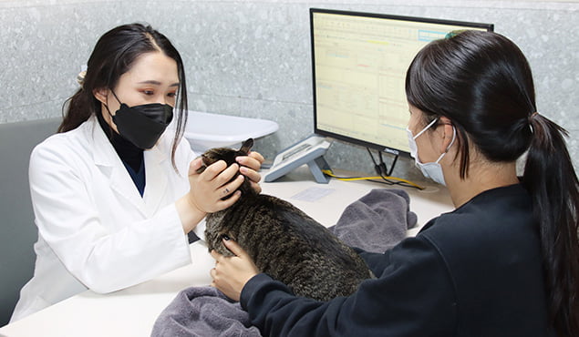 입원환자의 기본적인 상담은 중환자실 동물보건사 실장님을 통해 진행됩니다.