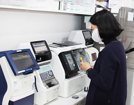 질병의 진단에 있어서 중요한 부분을 담당하며 혈액 검사, 호르몬 검사, 조직 검사