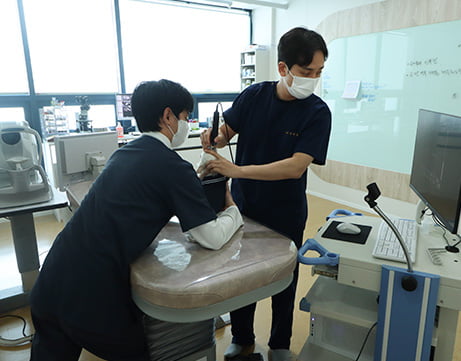 본원에서는 안압계, 직접 검안경, 간접 검안경, 안과용 렌즈, 슬릿 램프, 초음파 등 제반 안과 장비를 이용하여 다양한 안질환을 감별 진단하고 있습니다.