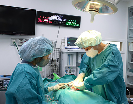 정형/신경외과 수술은 독립된 멸균수술실에서 흡입 마취기를 이용하여 심전도, 혈압, 산소 포화도, 호기말 이산화탄소