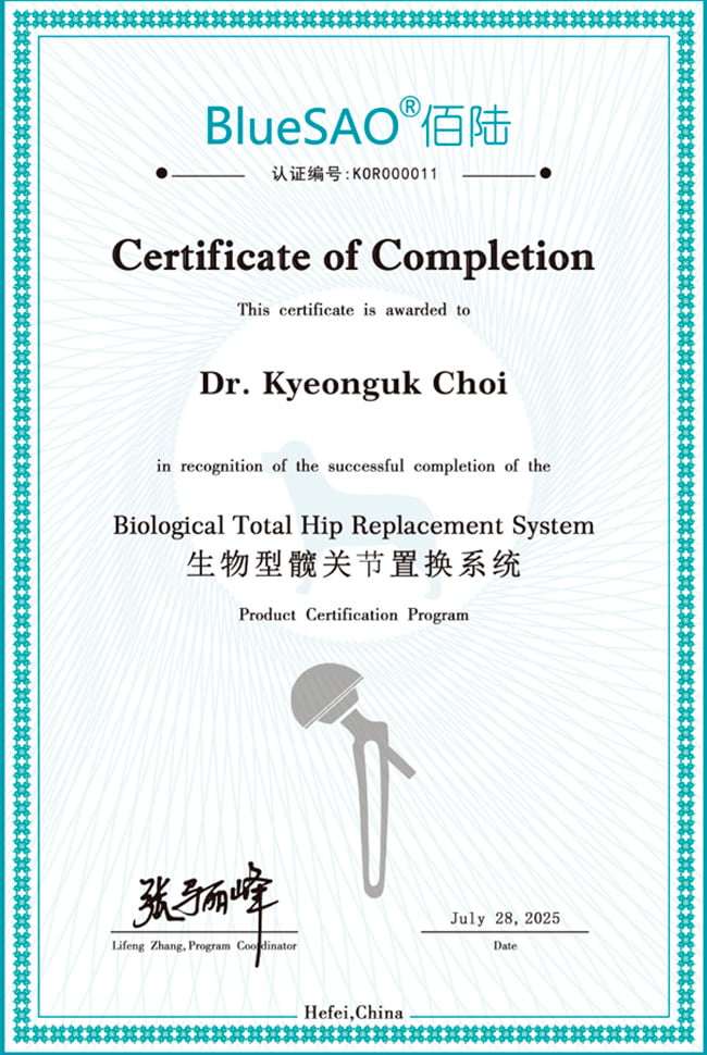 모든 과정 및 수술은 THR 수술 인증(Certification)을 받은 수의사가 진행합니다.